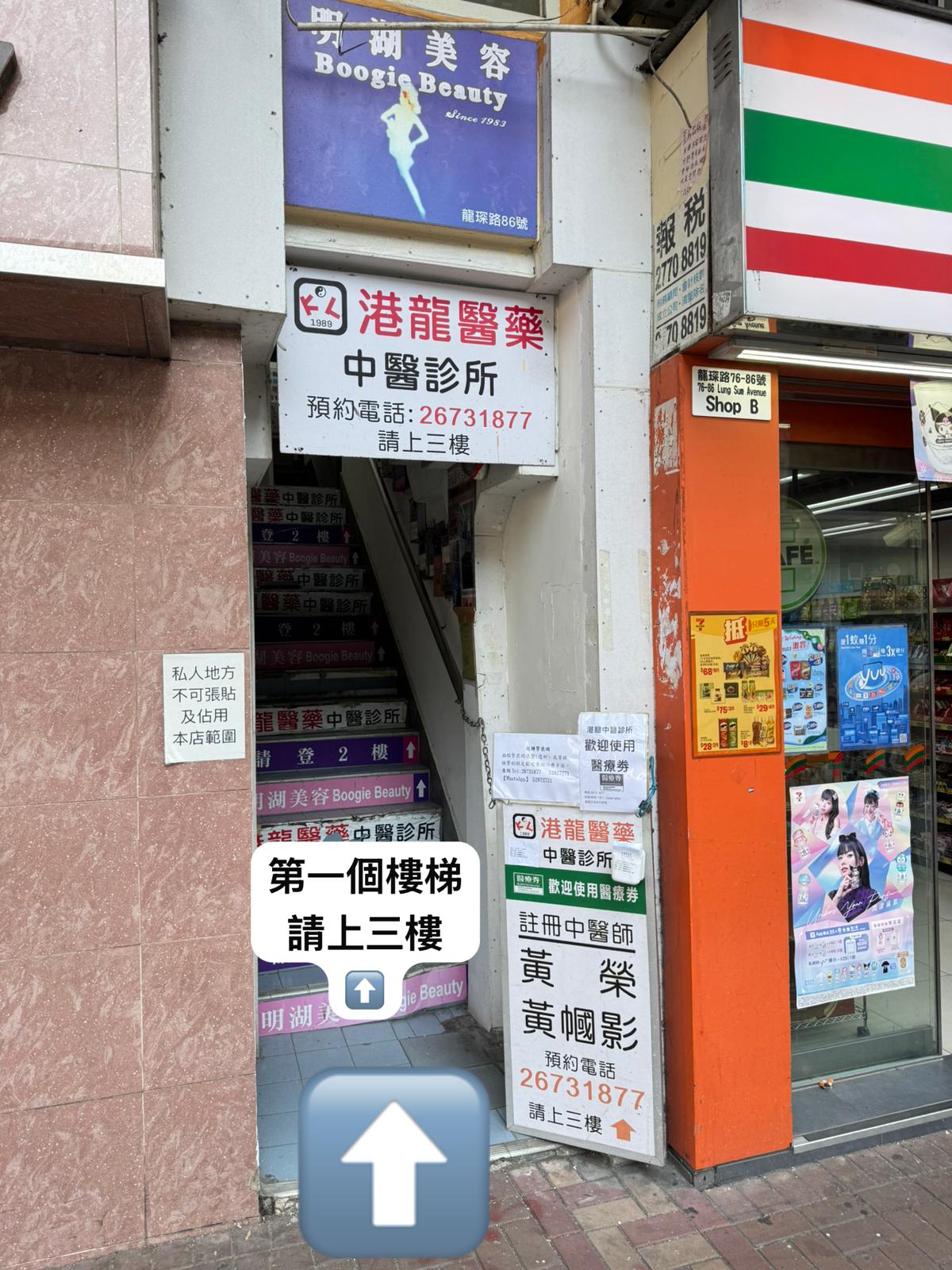 在第一個樓梯口(當鋪與7-11便利店中間)上三樓